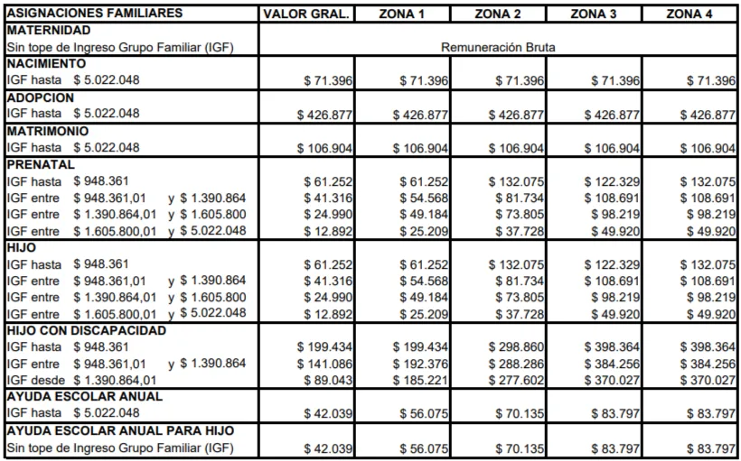 La Ayuda Escolar queda en $42.039, con valores que superan los $83.000 en zonas diferenciales.