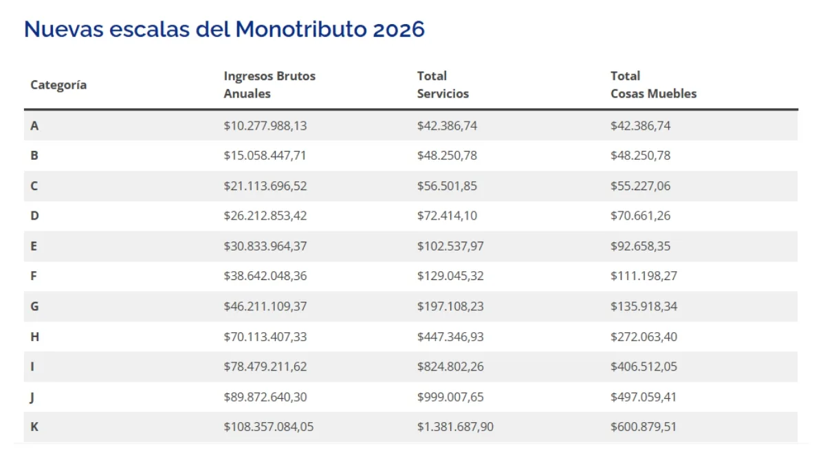 La actualización, que rige para todo el territorio nacional, eleva los límites de facturación anual de todas las categorías. Si bien el trámite de recategorización es hasta el 5 de febrero, los nuevos valores de las cuotas comenzarán a abonarse con el vencimiento de dicho mes.