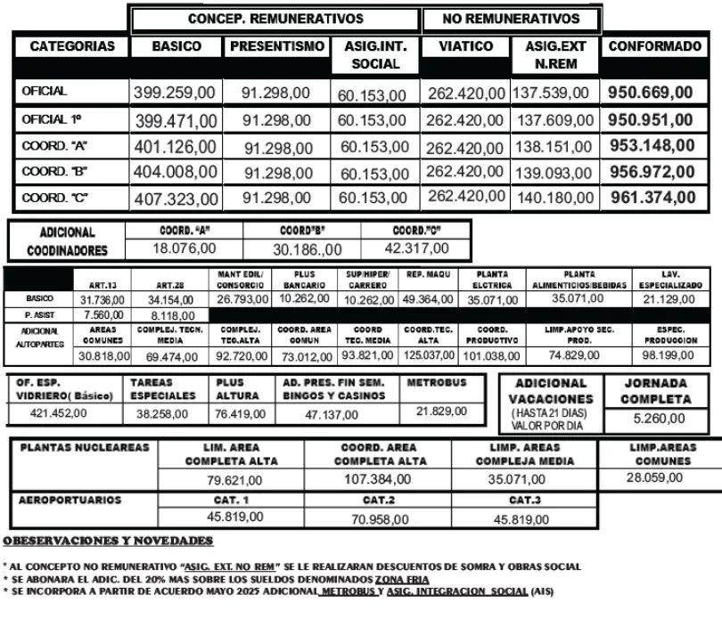 Es importante revisar el recibo de sueldo para asegurar que todos estos conceptos se hayan aplicado según la categoría y jornada correspondiente.