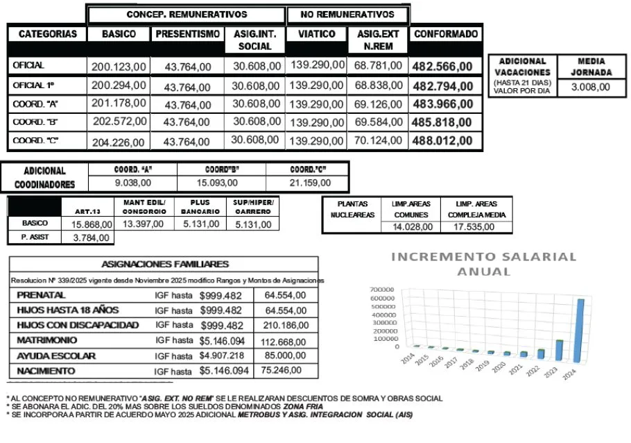 - Viáticos y Asignaciones No Remunerativas: $262.420 y $137.539 respectivamente.