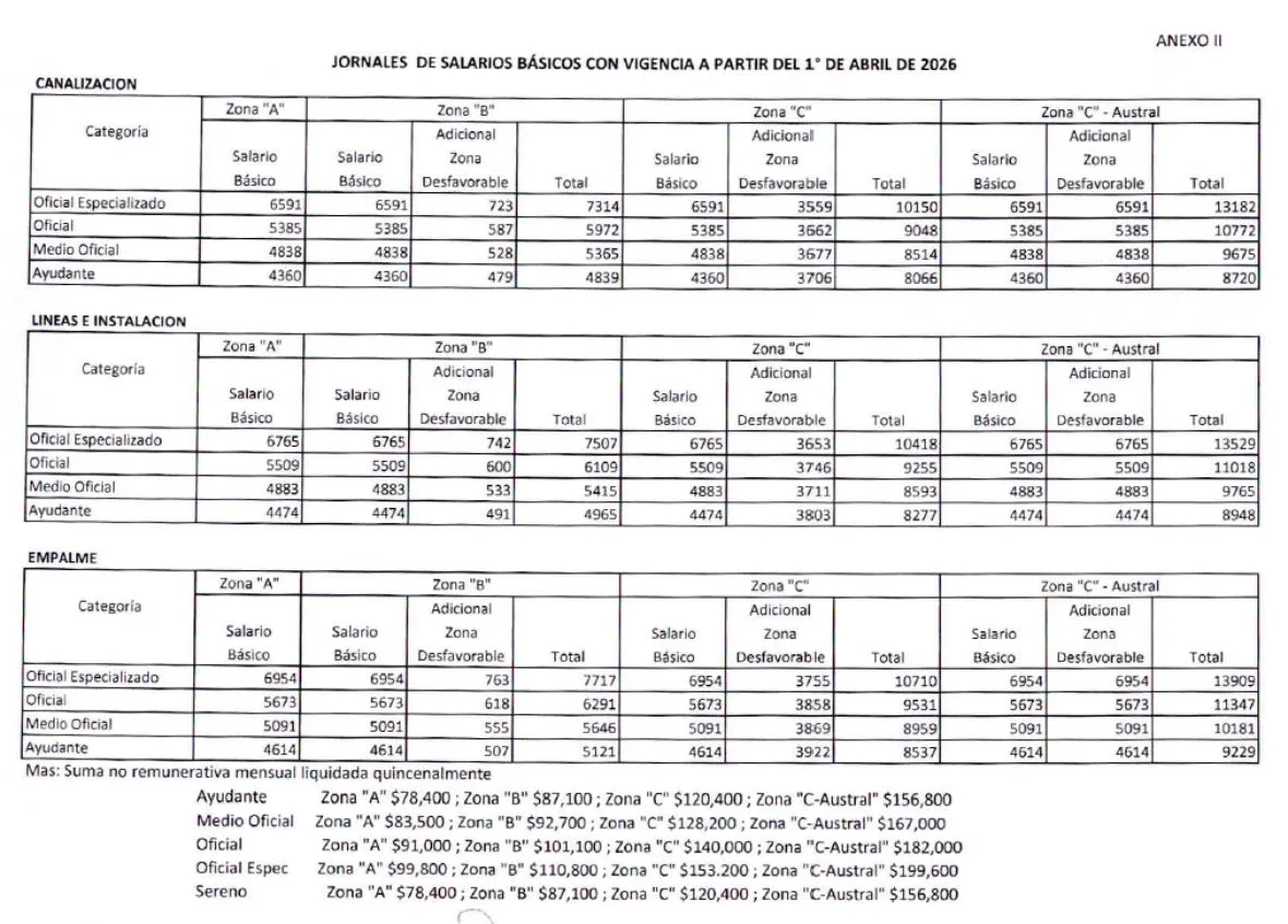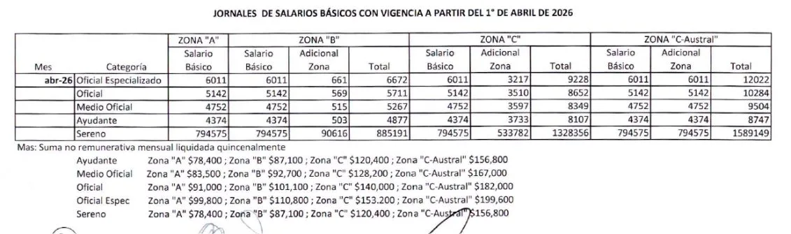 - Zona B (Neuquén, Río Negro, Chubut, La Pampa): El Oficial Especializado sube a $7.857 por hora.